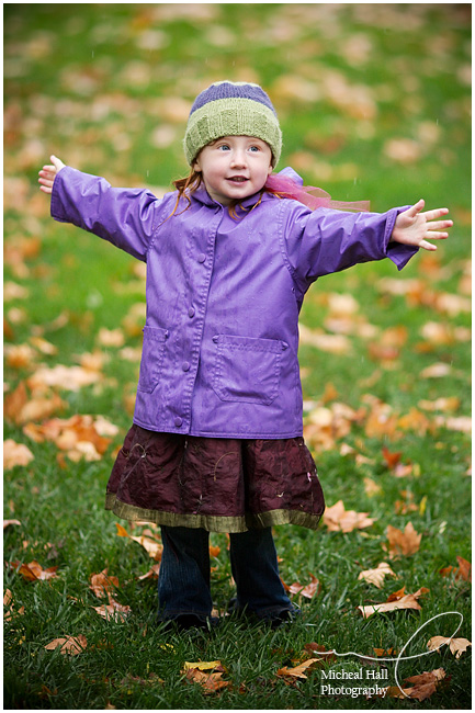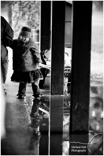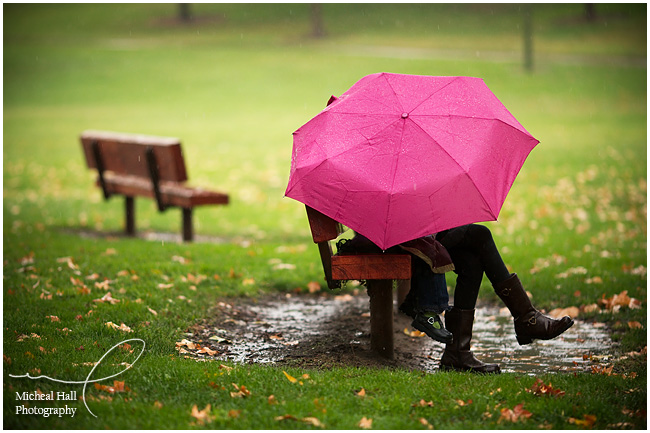 This was one of my favorite pictures of the day. Aedyn just LOVED the rain and her cousin, Sierra, just LOVES Aedyn, so they wandered the park with an umbrella and spent some time hanging out on this park bench. I like the color contrast, the rain drops and the two pairs of feet poking out from the umbrella!