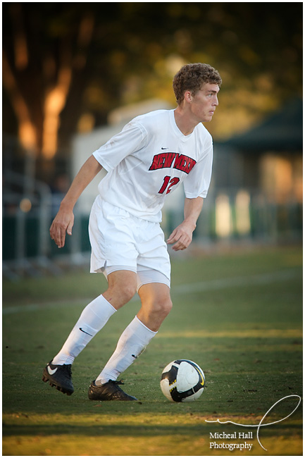 Well, it was back out to Sac State to photograph Chris. Today was a gorgeous Fall day - the temperature was perfect and the quality of the light was really nice. Unfortunately, Sac State's soccer field is surrounded by a chain link fence along one side and backed by some light colored buildings which reflect the sun - a difficult situation when most of the field is in shadow, but there were certain angles which were really nice.