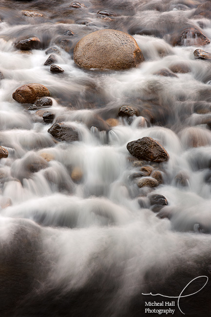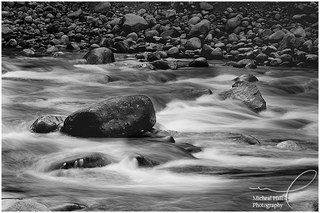 There are shorter routes in and out of the valley, but I like to take Highway 140 from Merced because of how pretty it is. This trip that really paid off. About 5 miles outside of the park borders, I spotted a beautiful cascade in the river. Before what I had seen really registered, I had the car pulled off the road. I spent about 35 minutes on the side of the road photographing this one really spectacular spot, and walked away with some of my favorite images from the trip.