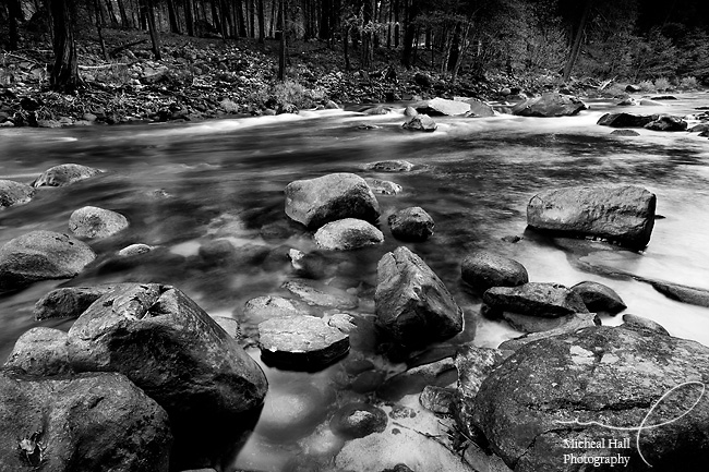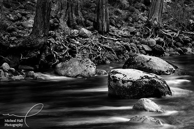 I've always really liked water. When I lived in Yosemite years back, I realized I like photographing water in all of its state - solid, liquid or gas. I like snow and ice formations, streams, rivers and the ocean and clouds. So it's not uncommon that I find myself down at the river, and that's where I spend a good deal of my time this trip: the Merced River.