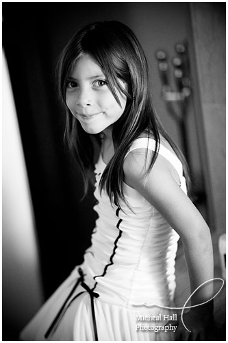 In spite of the fact that they look like a studio portrait, they were actually photographed in our front entryway, photographing down our hallway. I used two lights - one for Ryan and one for her bedroom door. The idea was to create a studio type look right in the middle of our house, with very little space - something I often have to do when photographing portraits.