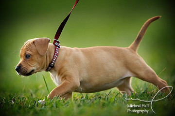 Lucy is a really sweet girl and is very calm and good natured (and she's got that new-puppy smell!) She's already fitting well into the household. Smoke seems to recognize that she's a pup and is therefor more gentle with her. He invites her to play tug of war with him by putting the tug of war towel in front of her and, when she takes it up, he is very gentle about how he pulls and tugs.
